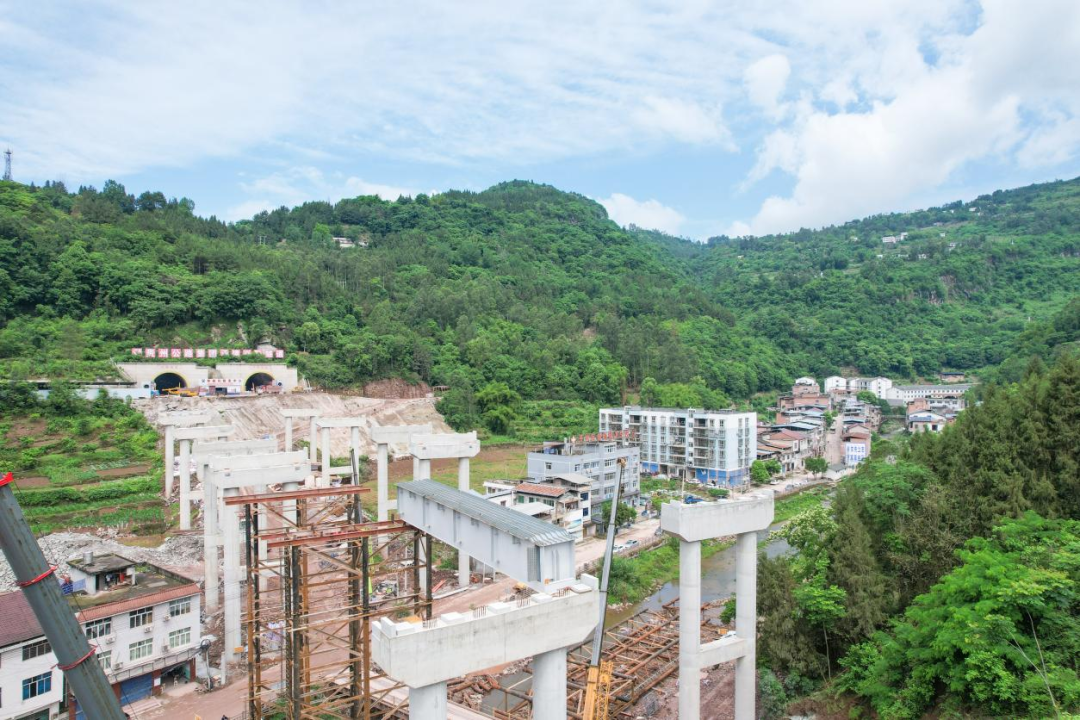 排垭村大桥墩台均接纳桩基础,除第二跨接纳60米跨径钢混组合梁外,其它跨为T梁。桥梁施工需横跨地方门路、河流以及埋设的污水管道,对现场绿色宁静文明施工提出了挑战。